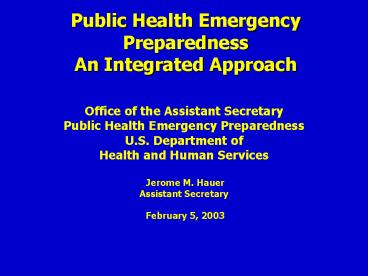 Title: Public Health Emergency Preparedness An Integrated Approach