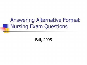 <Notice: Removed> Answering Alternative Format Nursing Exam Questions PowerPoint PPT Presentation