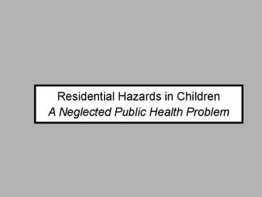 1Residential Hazards in ChildrenA Neglected