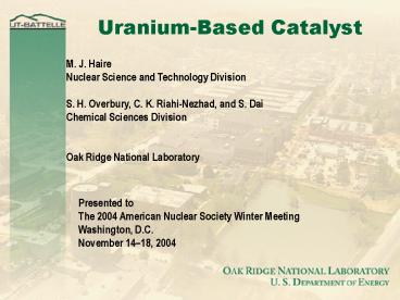 industrial and DOE sites - Uranium loaded TiO2 catalysts were active for