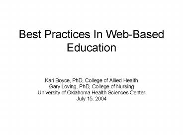 <Notice: Removed> Best Practices In WebBased Education PowerPoint PPT Presentation