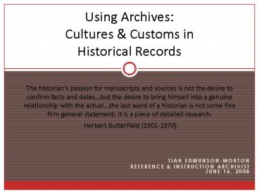 1Using Archives Cultures Customs in