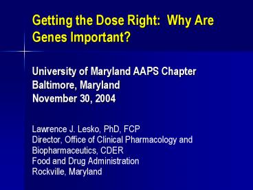 1Getting the Dose Right Why Are Genes Important?