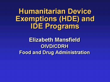 <Notice: Removed> Humanitarian Device Exemptions HDE and IDE Programs PowerPoint PPT Presentation