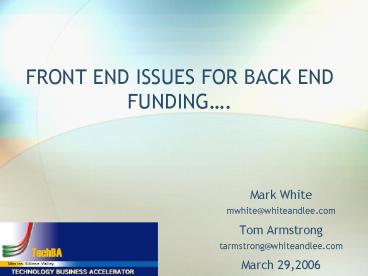 FRONT END ISSUES FOR BACK END FUNDING' PowerPoint PPT Presentation