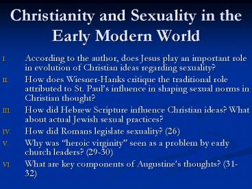 Christianity and Sexuality in the Early Modern World PowerPoint PPT Presentation