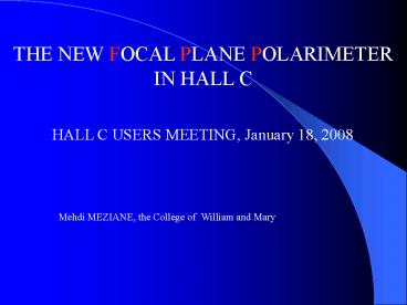 1THE NEW FOCAL PLANE POLARIMETER IN HALL C