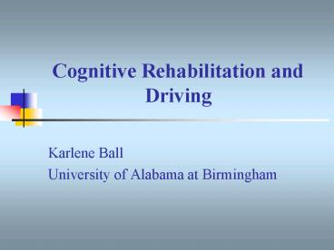 Cognitive Rehabilitation and Driving PowerPoint PPT Presentation