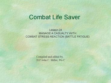 Title: Lesson 24 MANAGE A CASUALTY WITH COMBAT STRESS REACTION BATTLE FATIGUE