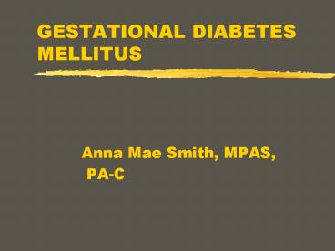 GESTATIONAL DIABETES MELLITUS PowerPoint PPT Presentation