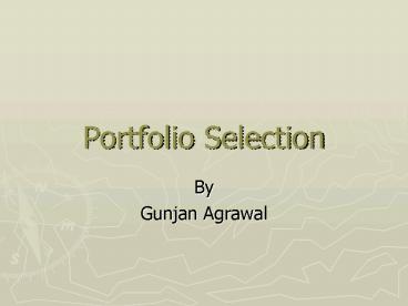 - What is Portfolio Selection?