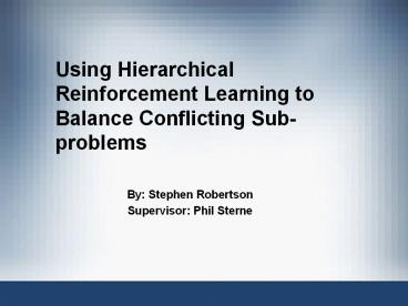 <Notice: Removed> Using%20Hierarchical%20Reinforcement%20Learning%20to%20Balance%20Conflicting%20Sub-problems PowerPoint PPT Presentation