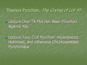 Thomas Pynchon, The Crying of Lot 49 PowerPoint PPT Presentation