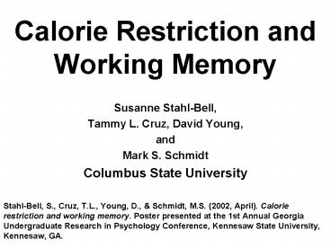 Calorie Restriction and Working Memory PowerPoint PPT Presentation
