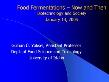 Title: Food Fermentations Now and Then Biotechnology and Society January 14, 2005