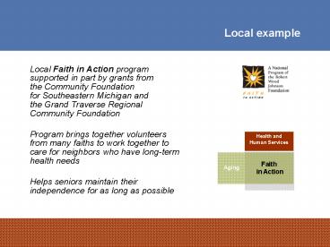 - Local Faith in Action program supported in part
