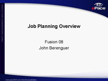 Job Planning Overview - PowerPoint PPT Presentation