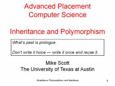 1Advanced Placement Computer Science Inheritance