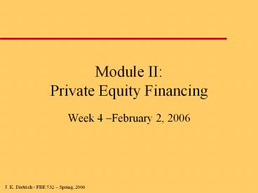 Module II: Private Equity Financing PowerPoint PPT Presentation