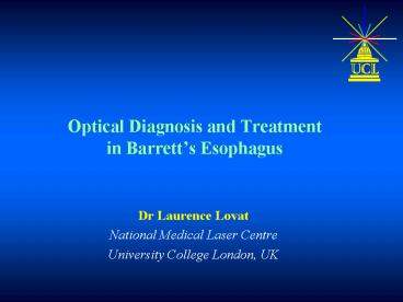 Title: Optical Diagnosis and Treatment in Barretts Esophagus