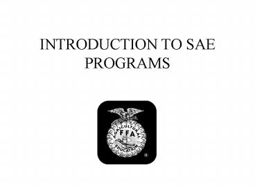 INTRODUCTION TO SAE PROGRAMS PowerPoint PPT Presentation