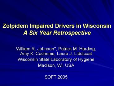 Zolpidem Impaired Drivers in Wisconsin A Six Year Retrospective PowerPoint PPT Presentation