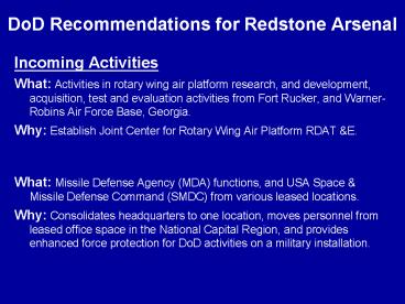 DoD Recommendations for Redstone Arsenal PowerPoint PPT Presentation