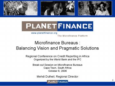 Finance mdutheil_at_planetfinance.org www.planetfi