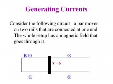 Consider the following circuit: a bar moves on two rails that are connected at one end. ... This will act to slow the bar down. ... – PowerPoint PPT presentation