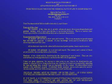 Title: MOLECULAR EVOLUTION MB437 and ADVANCES IN MOLECULAR EVOLUTION MB537