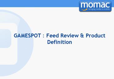 idea of final product definition and design. - For GameSpot well be using news (text, no