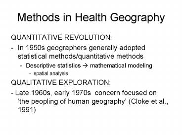 Title: Methods in Health Geography