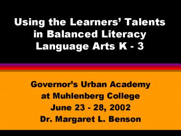 Using the Learners PowerPoint PPT Presentation