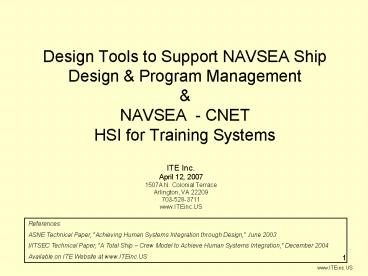 <Notice: Removed> Design Tools to Support NAVSEA Ship Design PowerPoint PPT Presentation