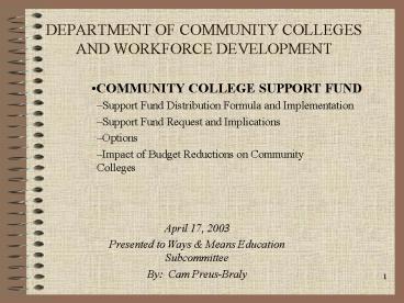 <Notice: Removed> DEPARTMENT OF COMMUNITY COLLEGES AND WORKFORCE DEVELOPMENT PowerPoint PPT Presentation
