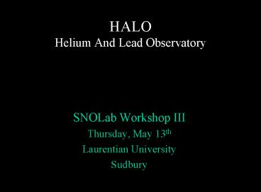 HALO Helium And Lead Observatory PowerPoint PPT Presentation
