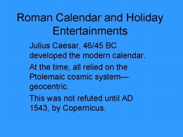 Roman Calendar and Holiday Entertainments PowerPoint PPT Presentation