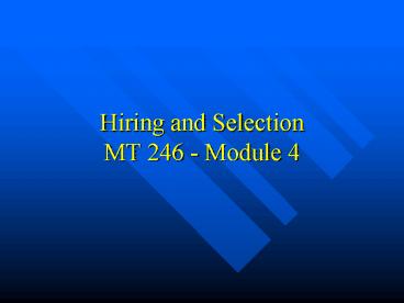 Hiring and Selection MT 246 Module 4 PowerPoint PPT Presentation