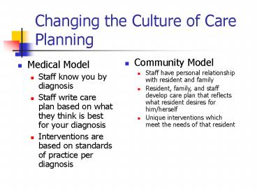Changing the Culture of Care Planning PowerPoint PPT Presentation