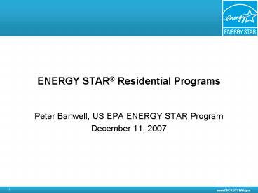 Title: ENERGY STAR Residential Programs