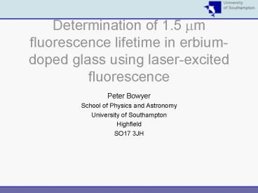 Title: Determination of 1'5m fluorescence lifetime in erbiumdoped glass using laserexcited fluorescence