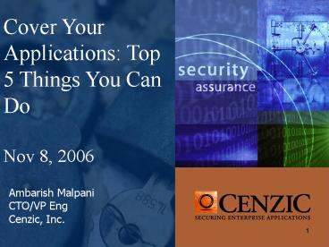 Ambarish Malpani CTO/VP Eng Cenzic, Inc.