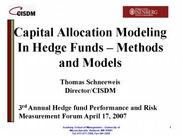 Thomas Schneeweis Director/CISDM 3rd Annual