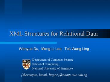 Title: Wenyue Du, Mong Li Lee, Tok Wang Ling