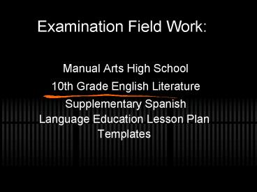 <Notice: Removed> Examination Field Work: PowerPoint PPT Presentation