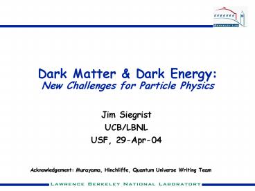 1Dark Matter Dark EnergyNew Challenges for