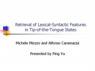 Title: Retrieval of Lexical-Syntactic Features in Tip-of-the-Tongue States