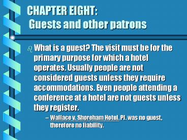 CHAPTER EIGHT: Guests and other patrons PowerPoint PPT Presentation