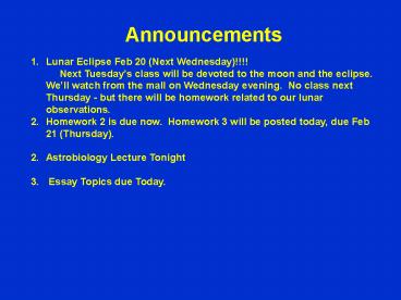 today, due Feb 21 (Thursday). - Astrobiology Lecture Tonight