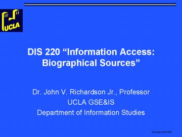 Title: DIS 220 Information Access: Biographical Sources